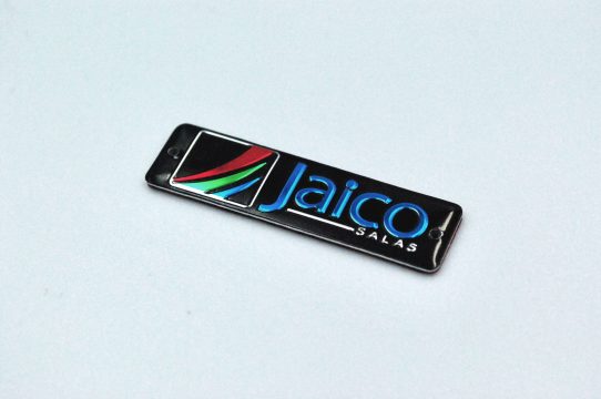 Aunque tiene volumen, no es flexiblesu color es usualmente metálico, puede ser logotipo o letra y resiste altas temperaturas.